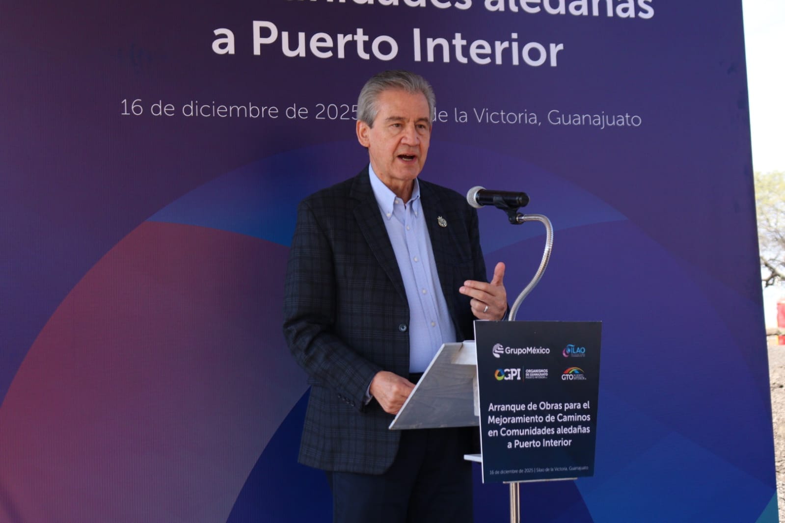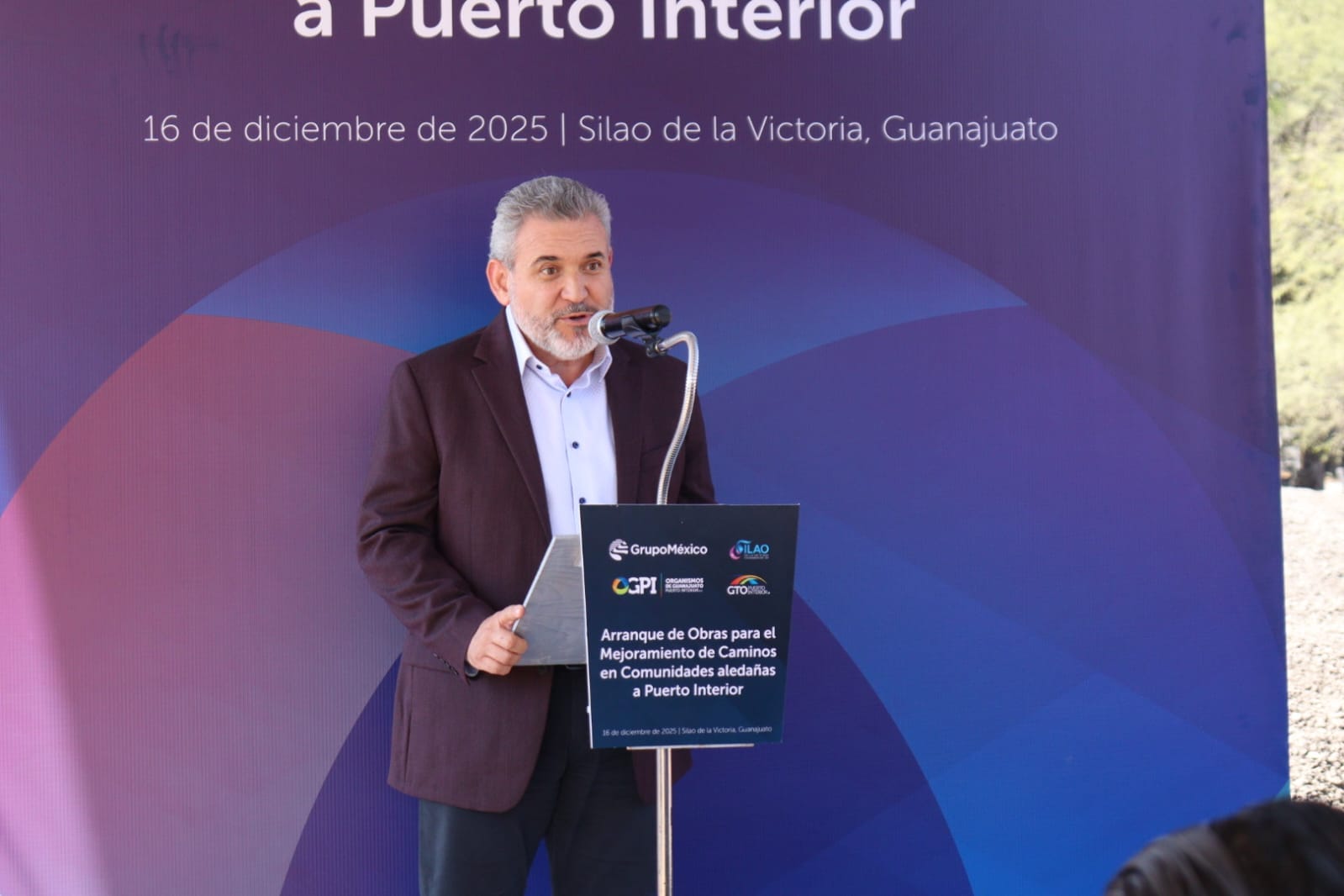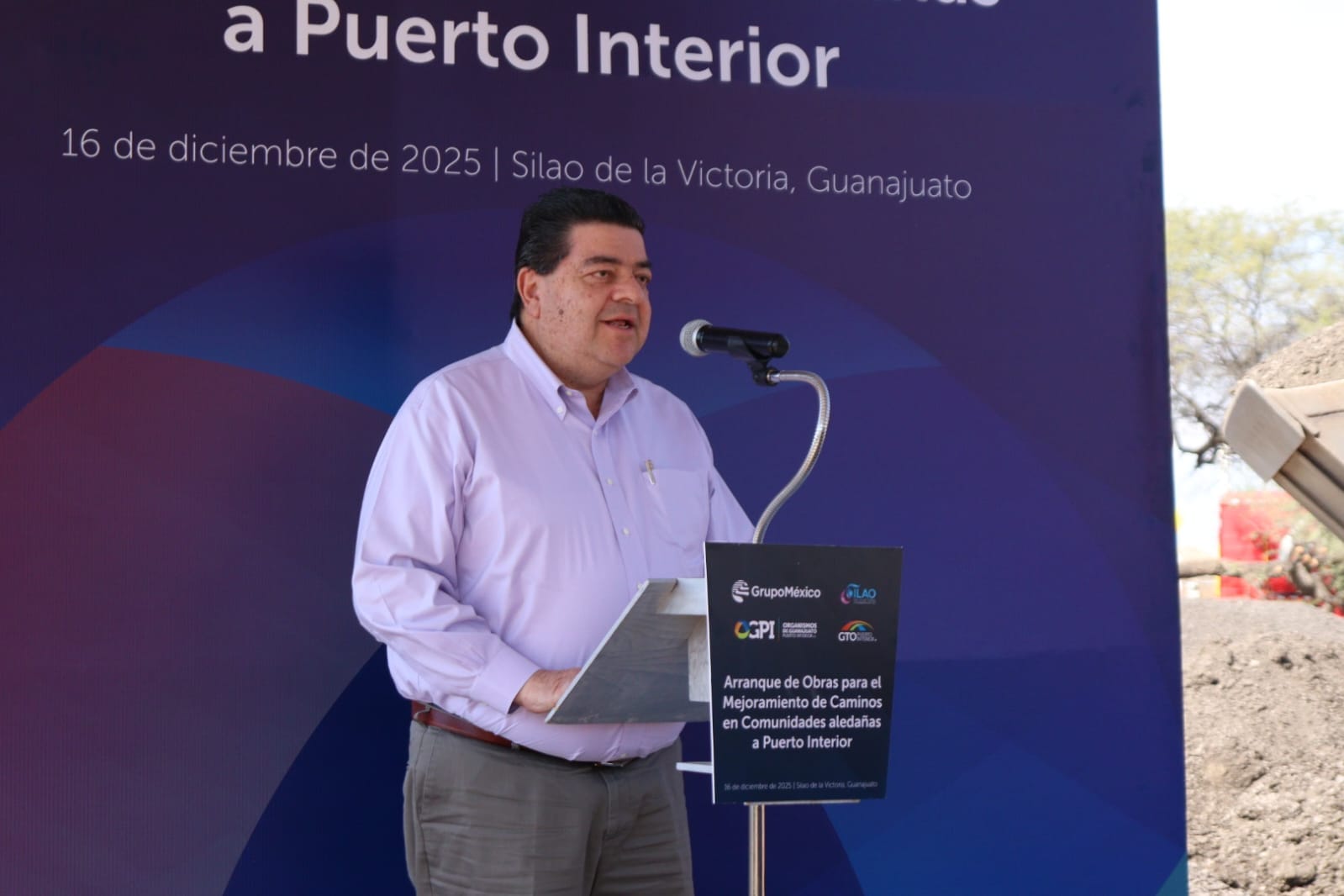 Silao, Guanajuato, 16 de diciembre de 2025.- En un acto realizado en las inmediaciones de Guanajuato Puerto Interior, representantes de Guanajuato Puerto Interior, Grupo México y el Consejo Directivo de Organismos de Guanajuato Puerto Interior (OGPI) dieron el banderazo de inicio al Arranque de Obras para el Mejoramiento de Caminos en Comunidades Aledañas a Puerto Interior, una intervención enfocada en mejorar la conectividad y la calidad de vida en comunidades vecinas al complejo logístico-industrial.